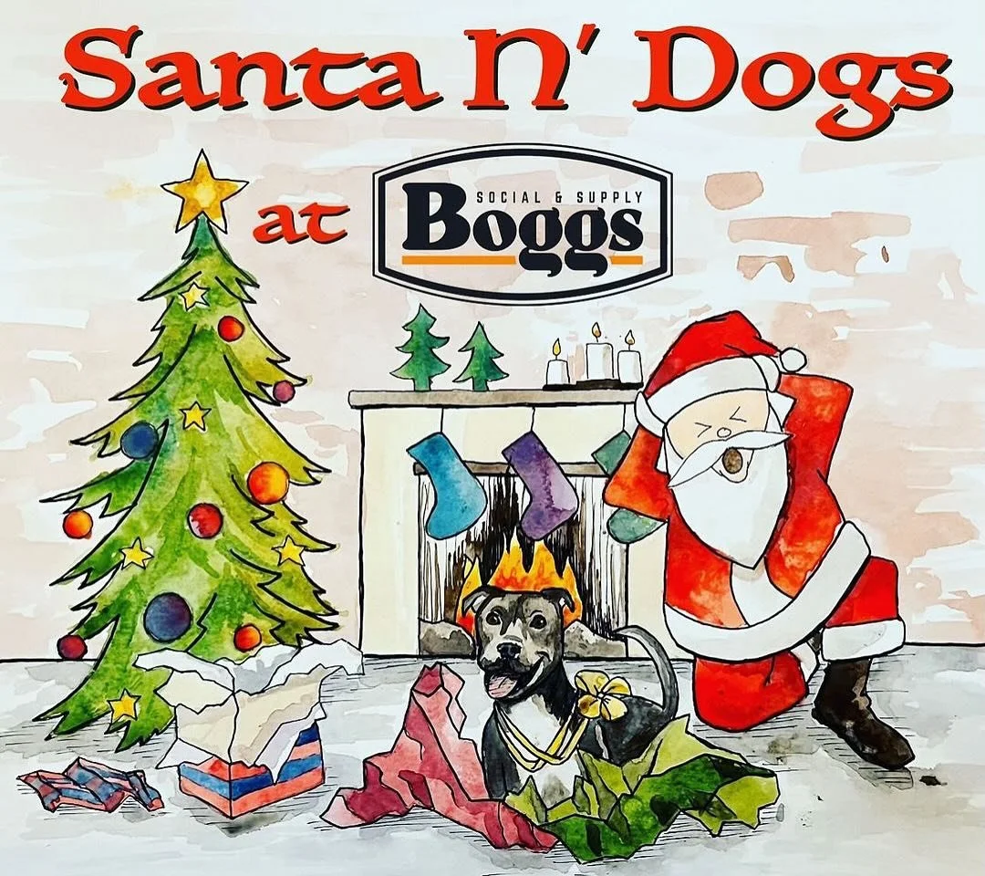 Saturday, December 16th at Boggs Social & Supply: Santa N’ Dogs photo shoot! Bring your pups from 12-3PM for a holiday photo shoot with your best friend. The package is $55 for a photo similar to the flyer painting, one with your dog on Santas lap, and one with you in it. $20 from every appointment will be donated to a Lifeline Animal Shelter. Rias Baby Bird will be there slinging their amazing brunch food, Boggs will have hot drinks outside and full bar inside, Cool Pups Creamery will be there selling their world famous pupsicles, and Big Daddy Biscuits will have all the baked treats your dog desires.